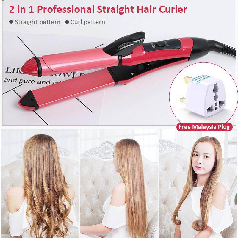 【Ready Stock in Malaysia】2 in 1 Hair Curling Iron Hair Roller Curling Wand Tourmaline Ceramic Hair Straightener and Curler Professional Electric Hair Straightener Comb Dry Wet Use Deep Curl Hair Styling Tools 360 Degree Rotatable Clip Hair Curler