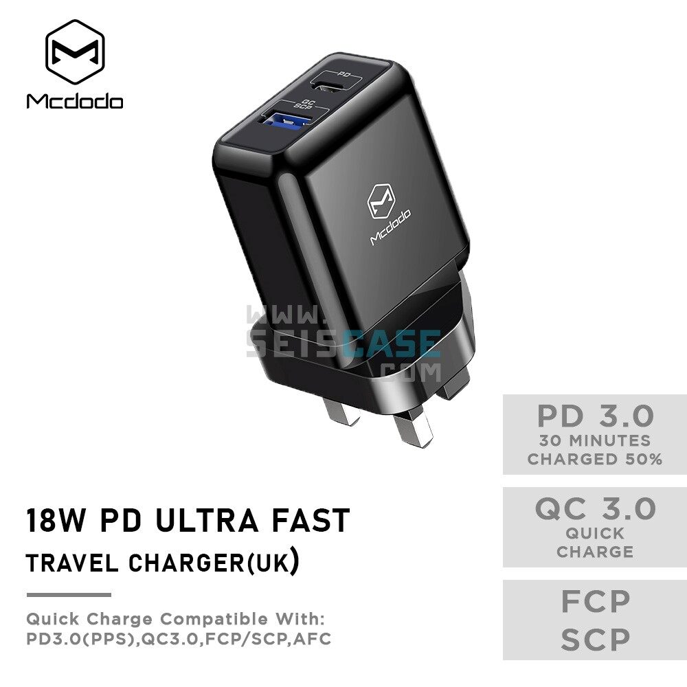 MCDODO 18W USB-C PD Ultra Fast Travel Charger Adapter QC 3.0 UK Plug Dual Ports Type C iPhone Samsung Huawei iPad