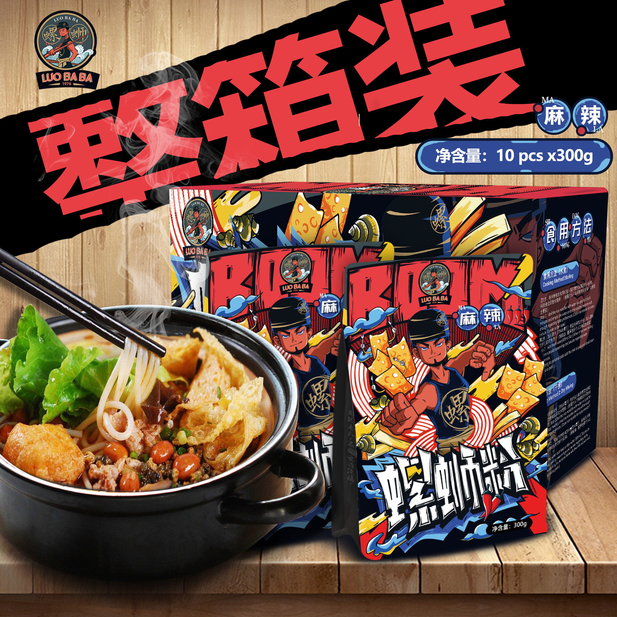 10 Packs-300g Chinese Instant Noodle 300g Instant Food Instant Rice Noodle Snail Soup Hot & Spicy / Pedas Flavor 柳州螺蛳粉方便面粉速食酸辣螺狮粉10包