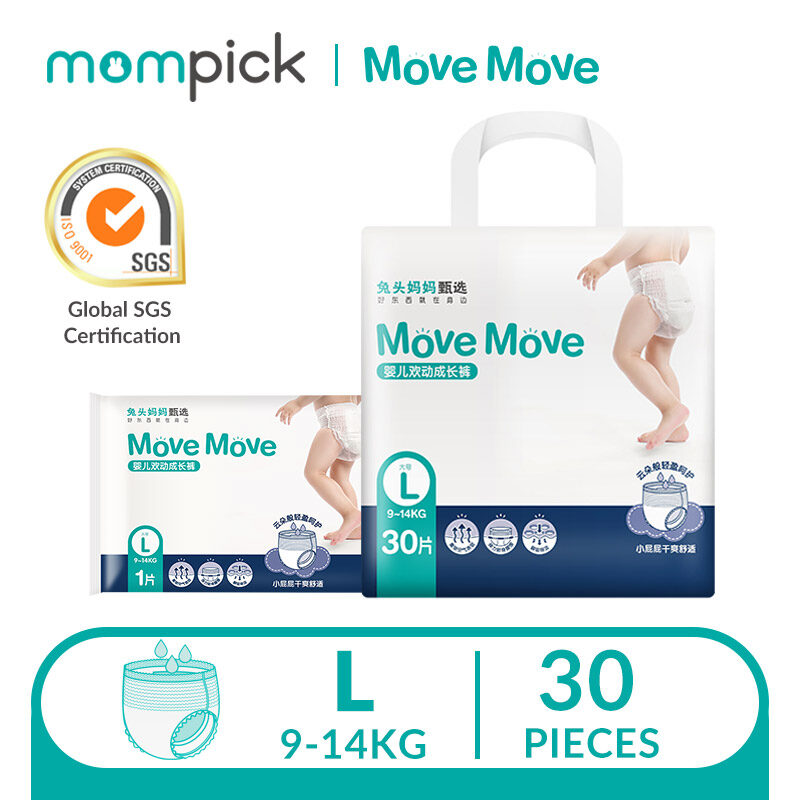 [RAYA SALE] Mompick Move Move Diaper Premium Comfortable Pull-Up Nappy L*30Pcs/XL*28Pcs/XXL*26Pcs