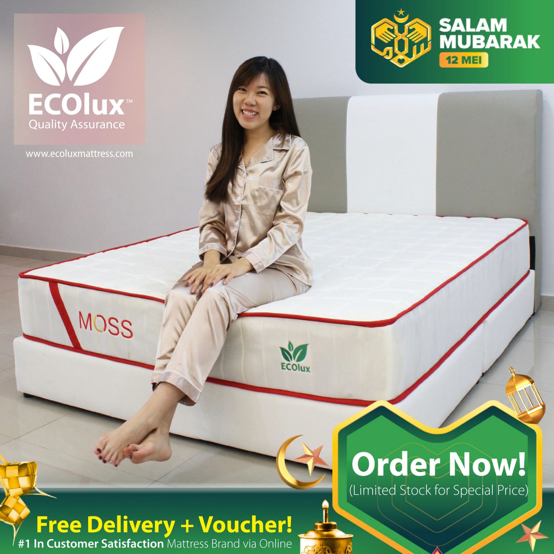 (PRE ORDER - DELIVERY AFTER RAYA) ECOlux - Moss (Mattress/Tilam Queen/King/Single/Super Single)(Bonnel Spring Mattress)(10 Inch) US/EURO Export Spec/Quality