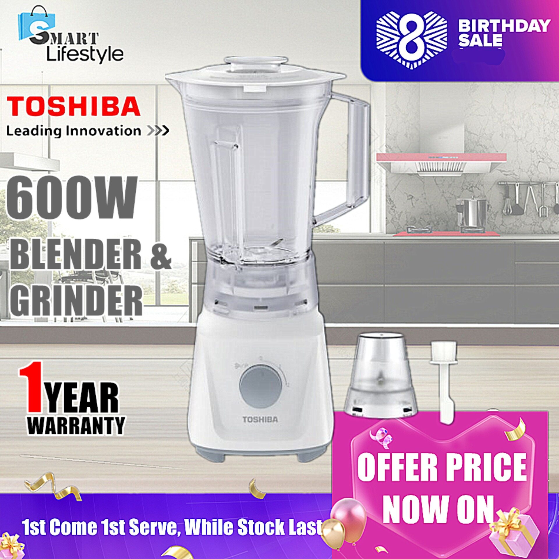 Toshiba 1.5L 2 Speed Blender BL-60PHNMY 600W Powerful Motor with Dry Mill