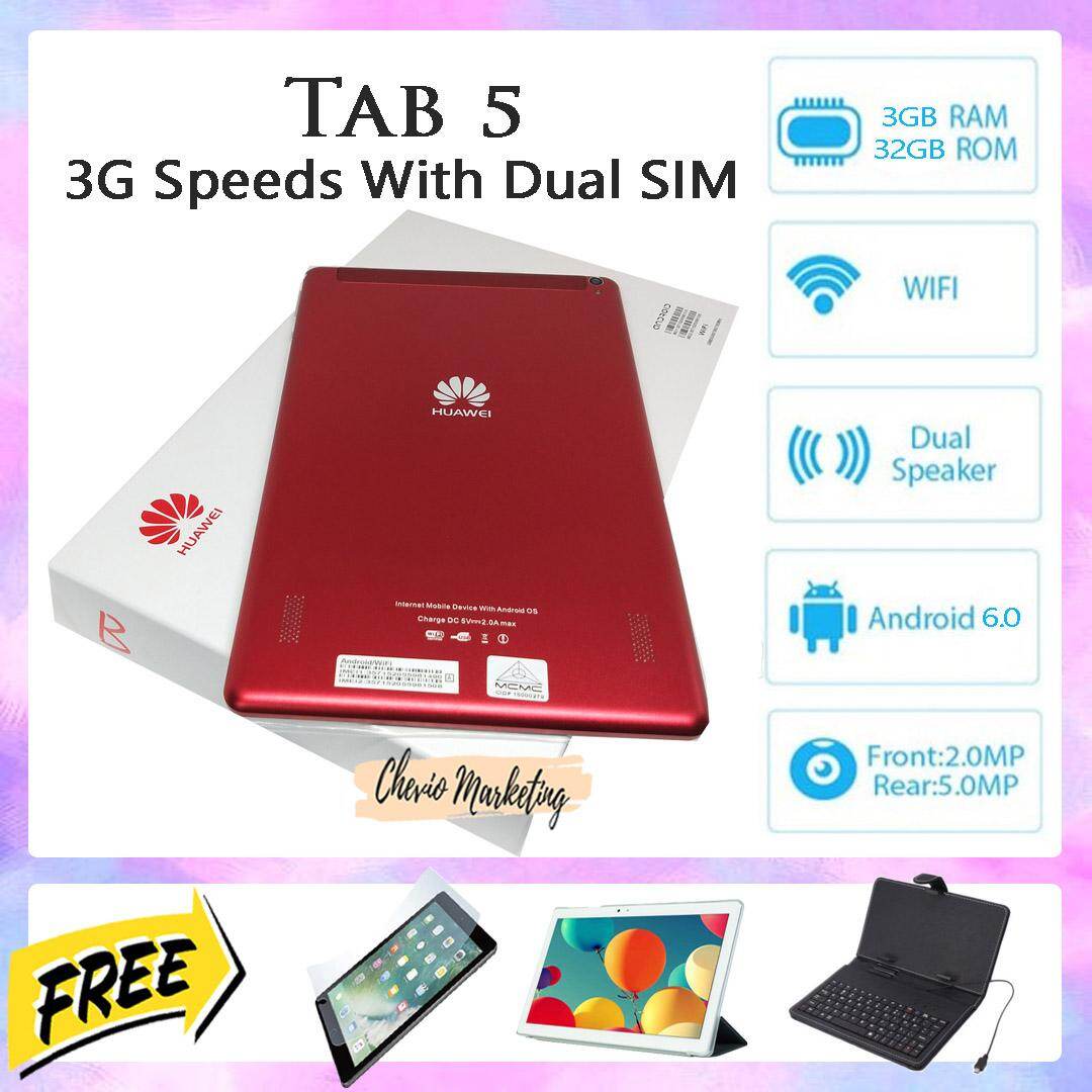 Huawei Tab 5 Dual Sim 3GB RAM + 32GB ROM 10.1 INCH Tablet FREE Screen Protector + Leather Case + Keyboard Case
