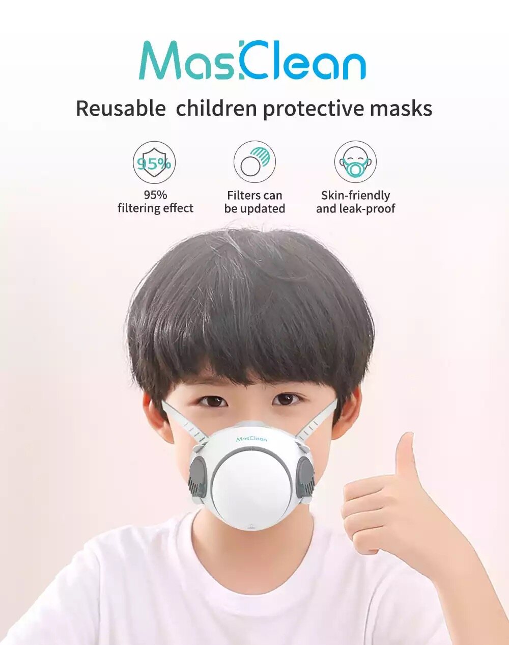Kids Mask MasClean M068 Children Reusable Face Mask N95/KN95