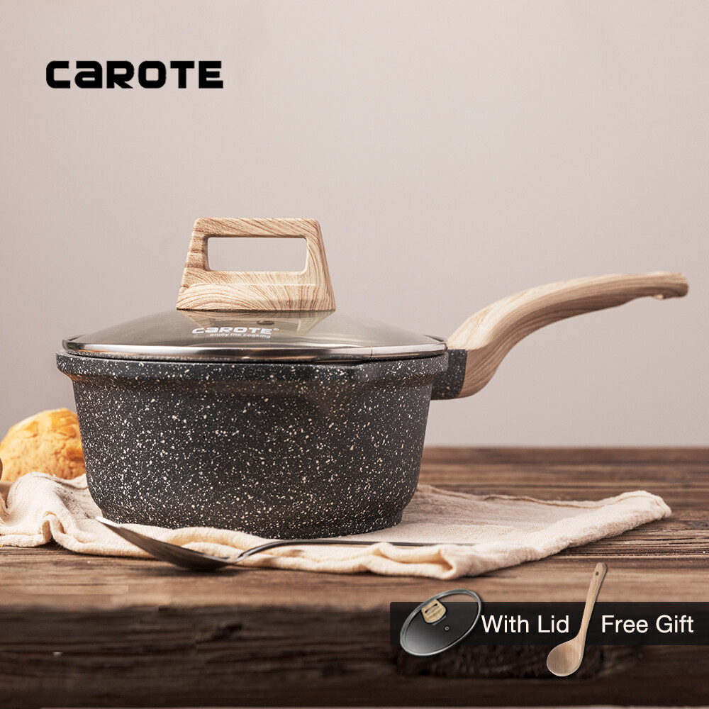 Carote Essential Woody Saucepan Milk Pan With Lid / Made with Maifan Stone and Non-Stick Coating from SwitzerlandSuitable For All Stove Including Induction