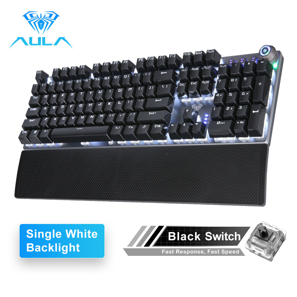 [RAYA SALE] AULA F2058/F2088 Mechanical Gaming Keyboard wrist rest Multimedia Knob, Marco Programming metal panel LED Backlit keyboard for Computer Gamer