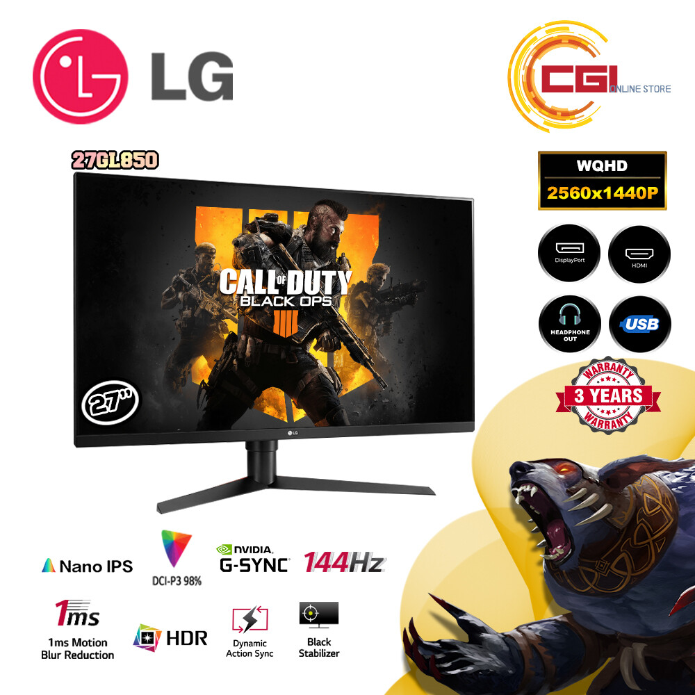 LG Gaming Monitor 27 27GL850 UltraGear 144Hz 1ms HDR10 Nano IPS G-Sync/FreeSync