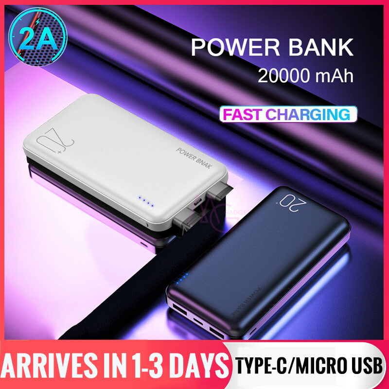 20000 Mah Mini PowerBank Portable 2A 2 USB Micro Type-C Phone Mobile Power Bank for IPhone Samsung Xiaomi Huawei OPPO Free Fast Charging