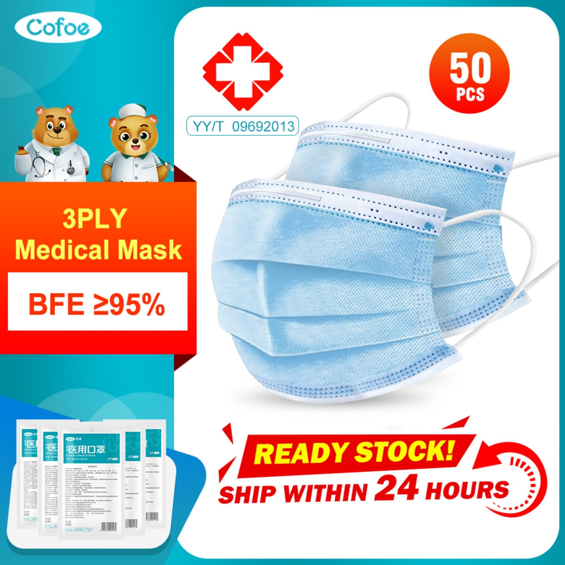 Cofoe 50pcs 3 Ply Disposable Face Mask with Elastic Earloop Dustproof Anti-fog Anti-virus Protective Cover 3 Layer Masks Facemask for Adult
