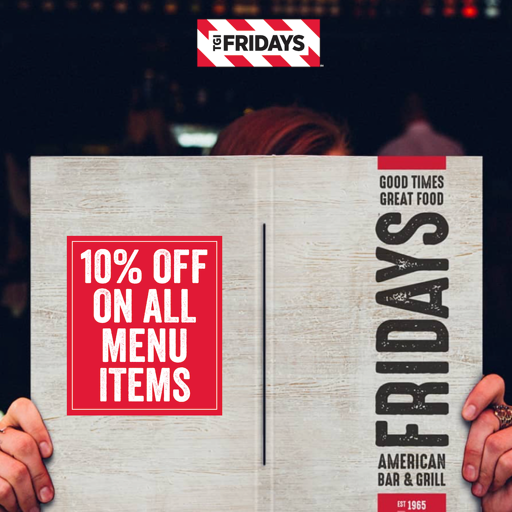 TGI Fridays - 10% OFF Voucher (except alcoholic beverages) - Lazat F&B eCoupon (Valid for 90 Days)