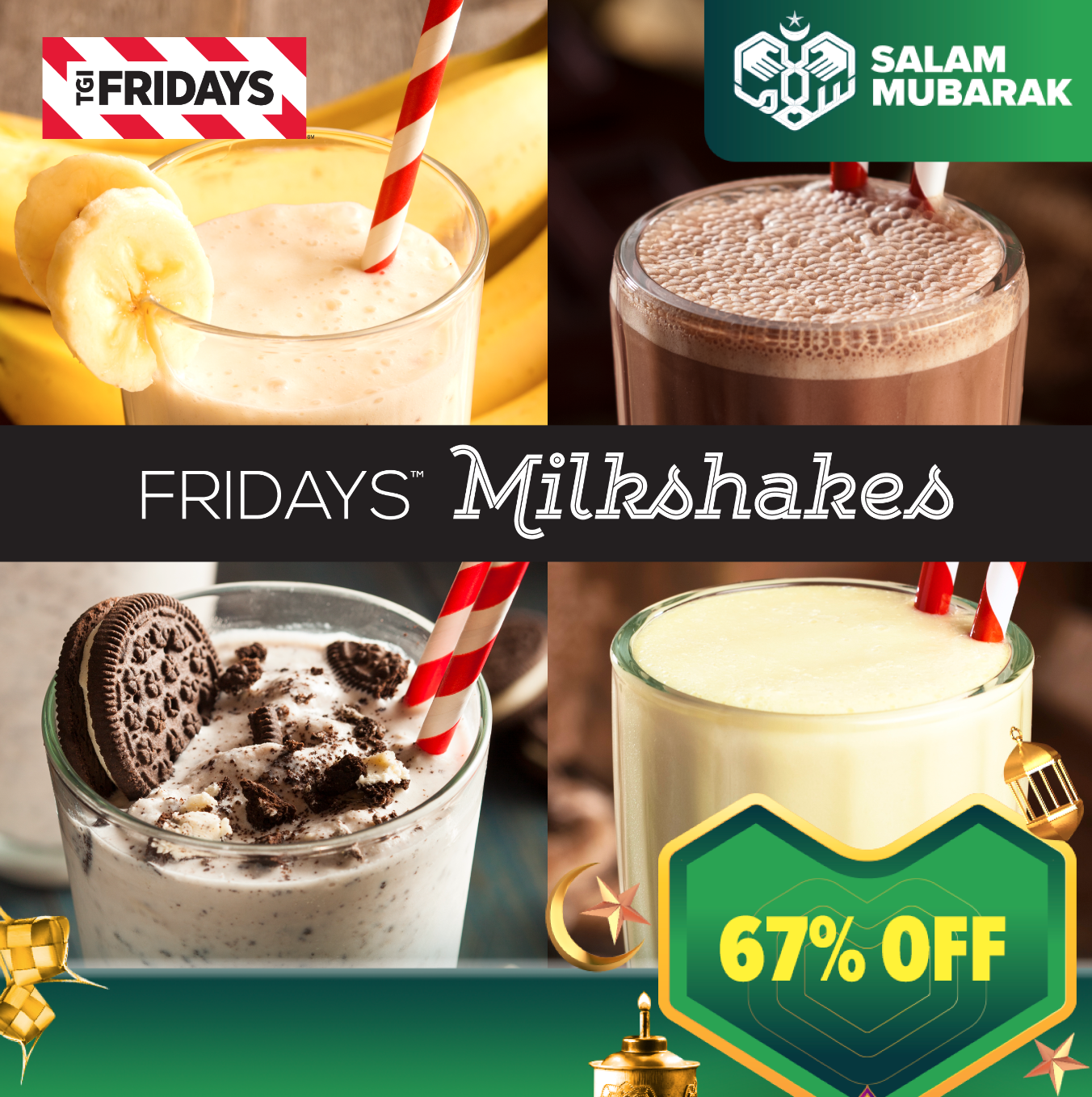 TGI Fridays - 1 Milkshake (Vanilla/Chocolate Chip/Oreo Cookies/Banana) - Lazat F&B eCoupon (Valid for 90 Days)